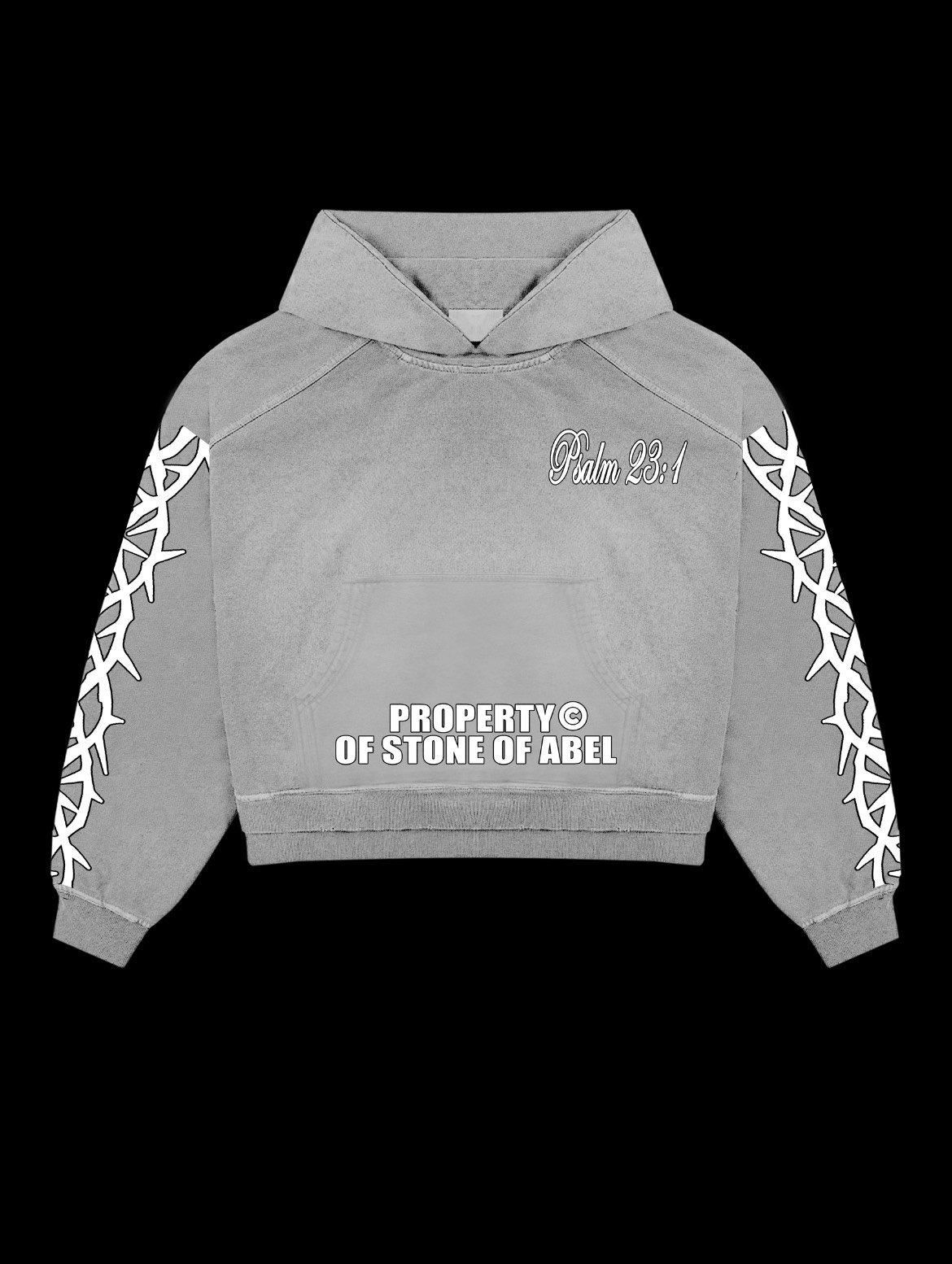 Made from 100% cotton, this unisex hoodie blends faith and fashion with a sun faded finish. Features a bold Psalm 23:1 graphic and shimmering rhinestones art on the back